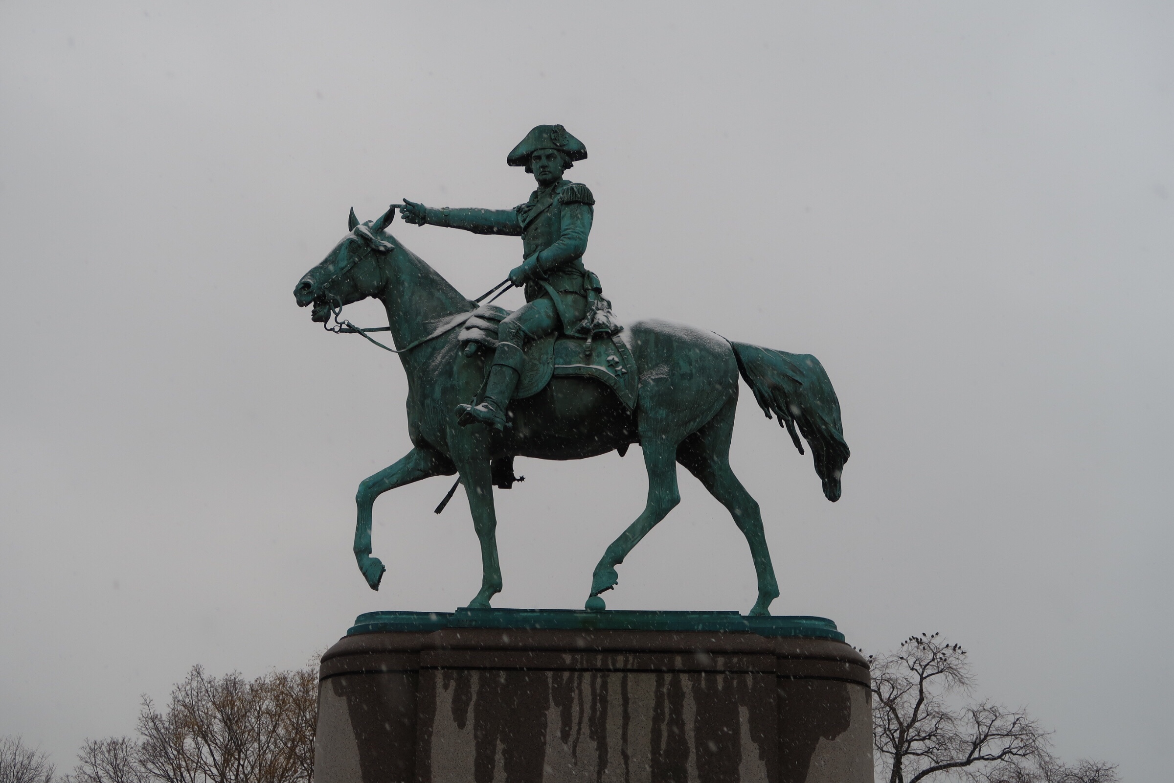 On Saturday, DC was graced with a couple inches of snow. I am a firm believer that snow can make anything more beautiful, so it was refreshing to see statues and buildings I have walked by dozens of times in a new way. Snow brings out a slowness in me that allows an appreciation of what has gone unnoticed. The natural wiggled its way into the unnatural; brick and stone became a canvas that snow was compelled to paint upon.