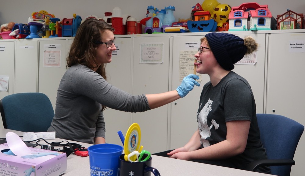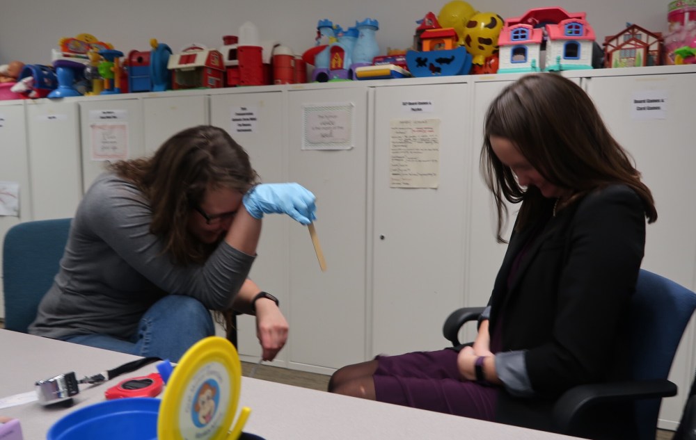 Thursday, Elizabeth (right) and I visited Kristen (left) at Gallaudet, where she is getting her Masters in Speech-Language Pathology. As part of an assignment, she had to perform an assessment of oral mechanics on three volunteers. Guess who two of those volunteers were.