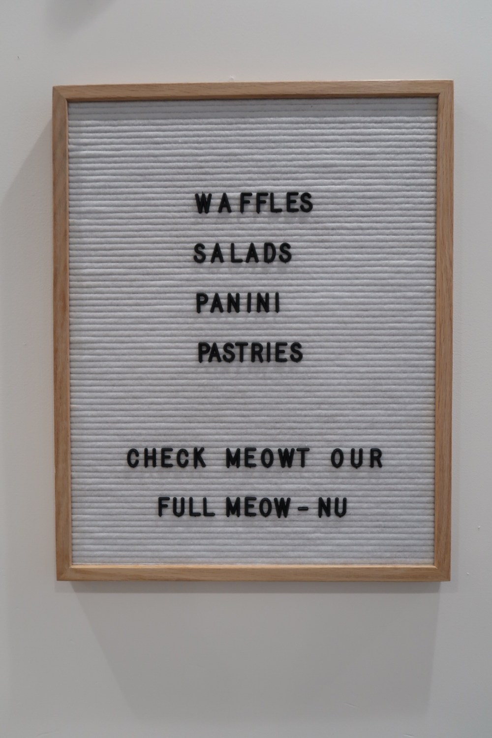The place was covered in cat puns and play-on-words, as exhibited by the wall decorations and menu.