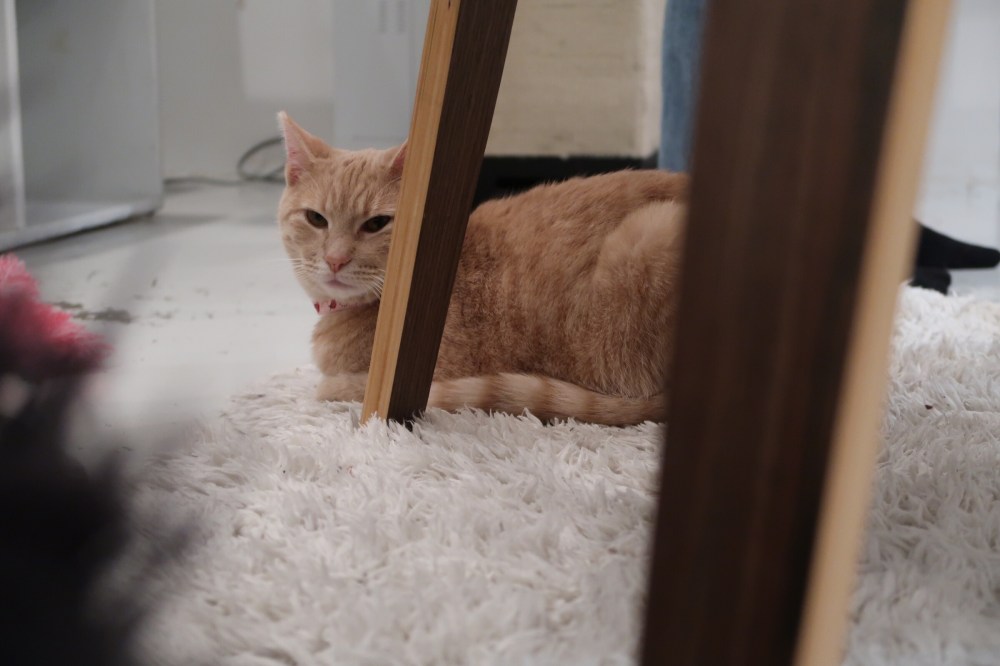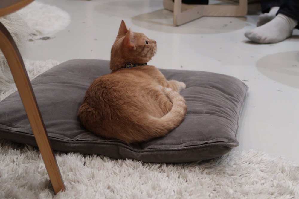 I could tell these cats were accustomed to making themselves at home. They would lie down on tables, chairs, bean bags, and pillows all over the room. They did as they pleased (as most cats do), whether it was playing with a toy, taking a snooze, or visiting the litter box.