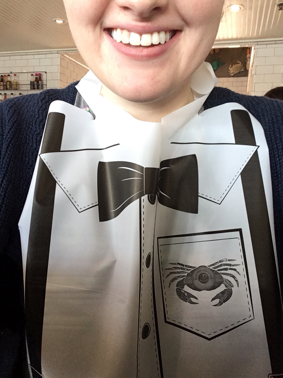 By the end of it, my hands were covered in garlicy, buttery goodness. Good thing they provided a bib (and such a fancy one at that)!