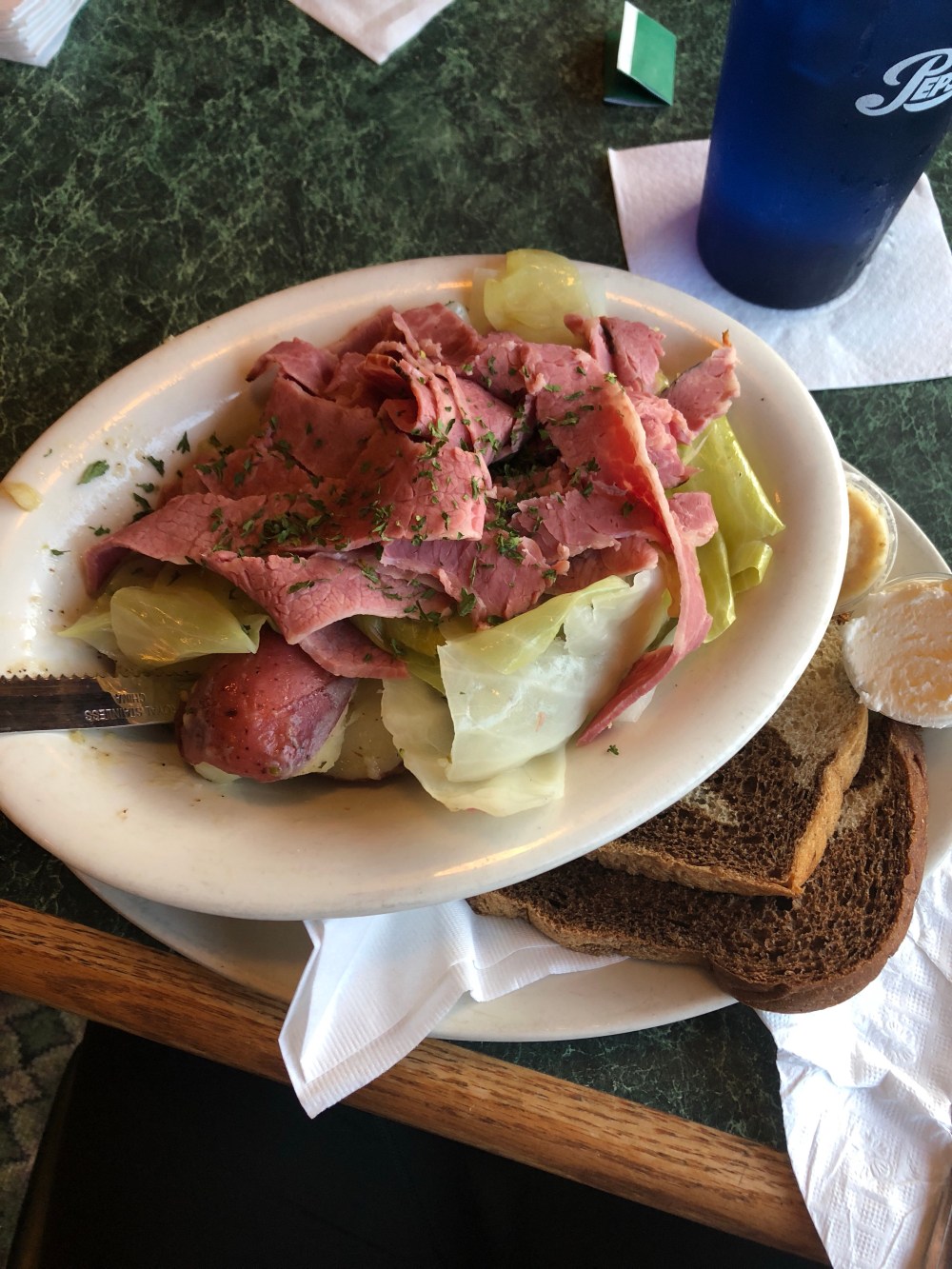 Dad picked a local Irish pub for our dinner spot and we were both delightfully pleased with our meals. I got the corned beef and cabbage, Dad the shepherd’s pie. When in Rome, right?