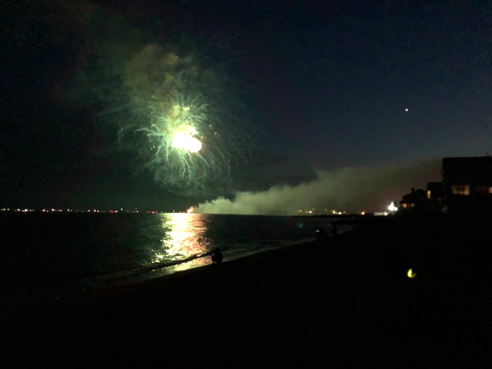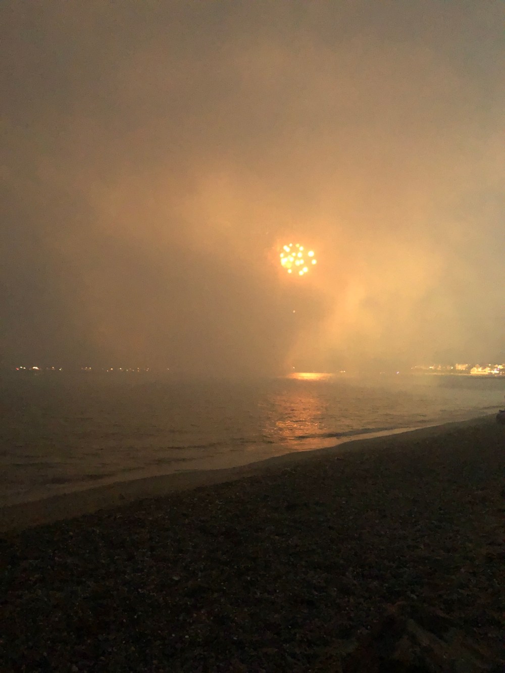 As more fireworks were lit, more smoke began to accumulate. At one point, the fireworks were hardly visible through the thick veil. Many of the groups on the beach uttered groans of disappointment, but I couldn’t help but be taken back in time to the War of 1812, when Francis Scott Key watched from afar as he hear the exchange of gunfire and cannons. Was this what it felt like, to not know who was winning, who was dying, who was still fighting?