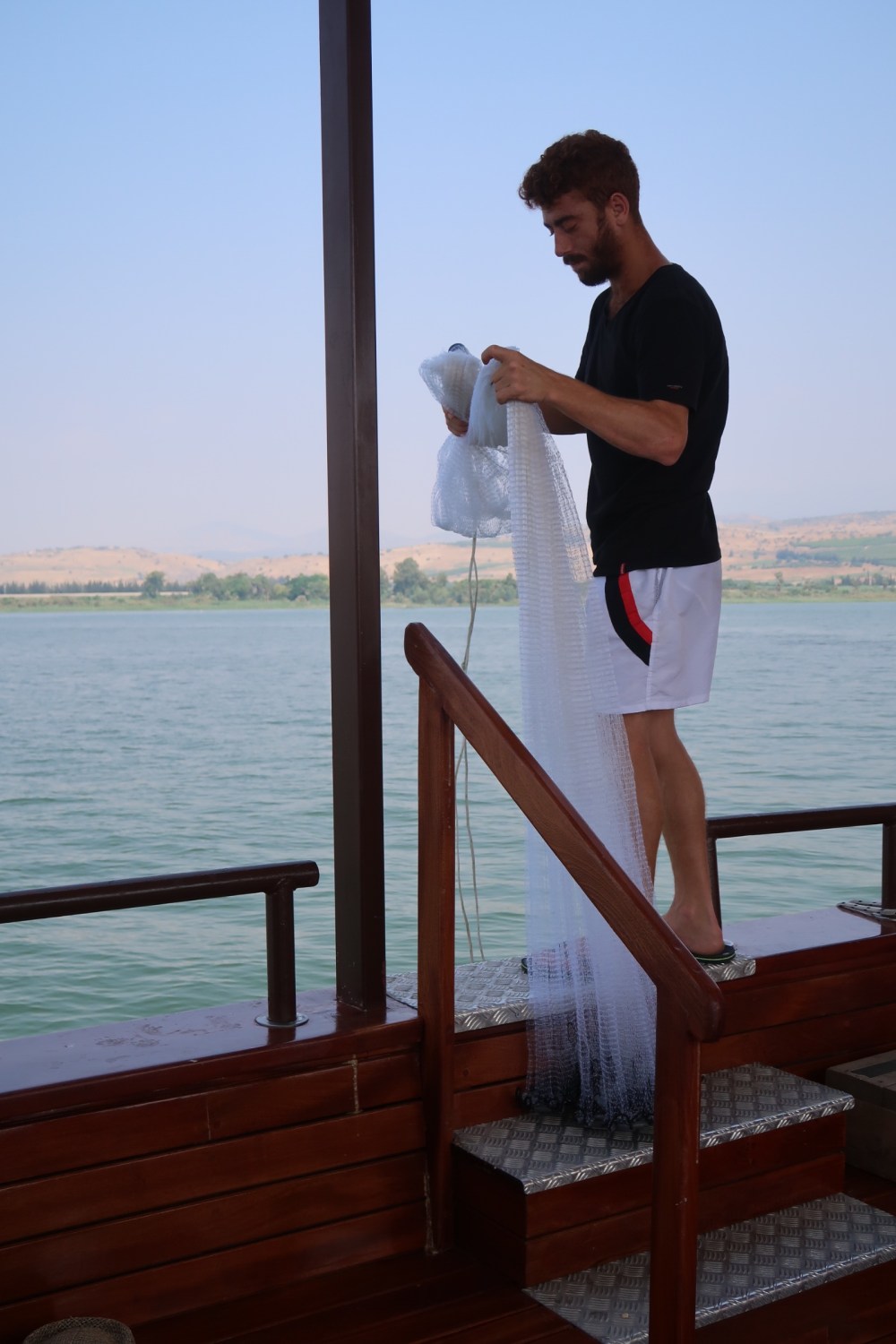 One of the crew members gave us a demonstration of how the fishermen used the nets in the first-century. Though present-days were made of plastic and the weights of different metal, the message was clearly communicated.