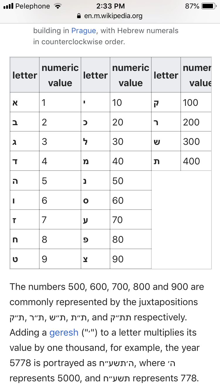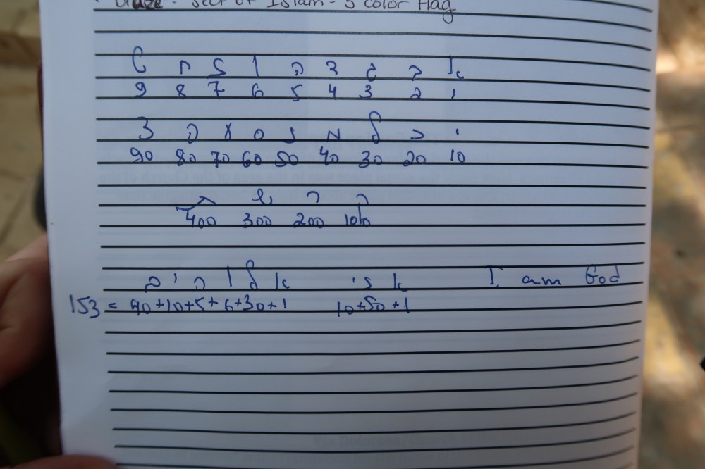 Itai mentioned a correlation between the Hebrew alphabet and numbers, so when I asked him to elaborate, he wrote them down for me!
