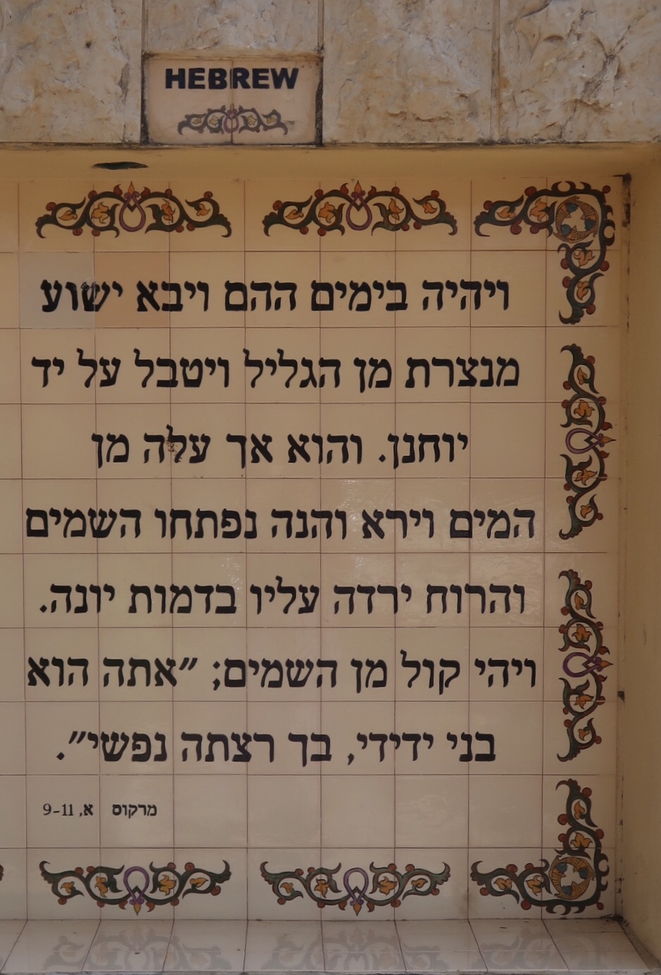 Along the wall was Mark 1:9-11 in all sorts of different languages! I only captured the Hebrew and English translations.