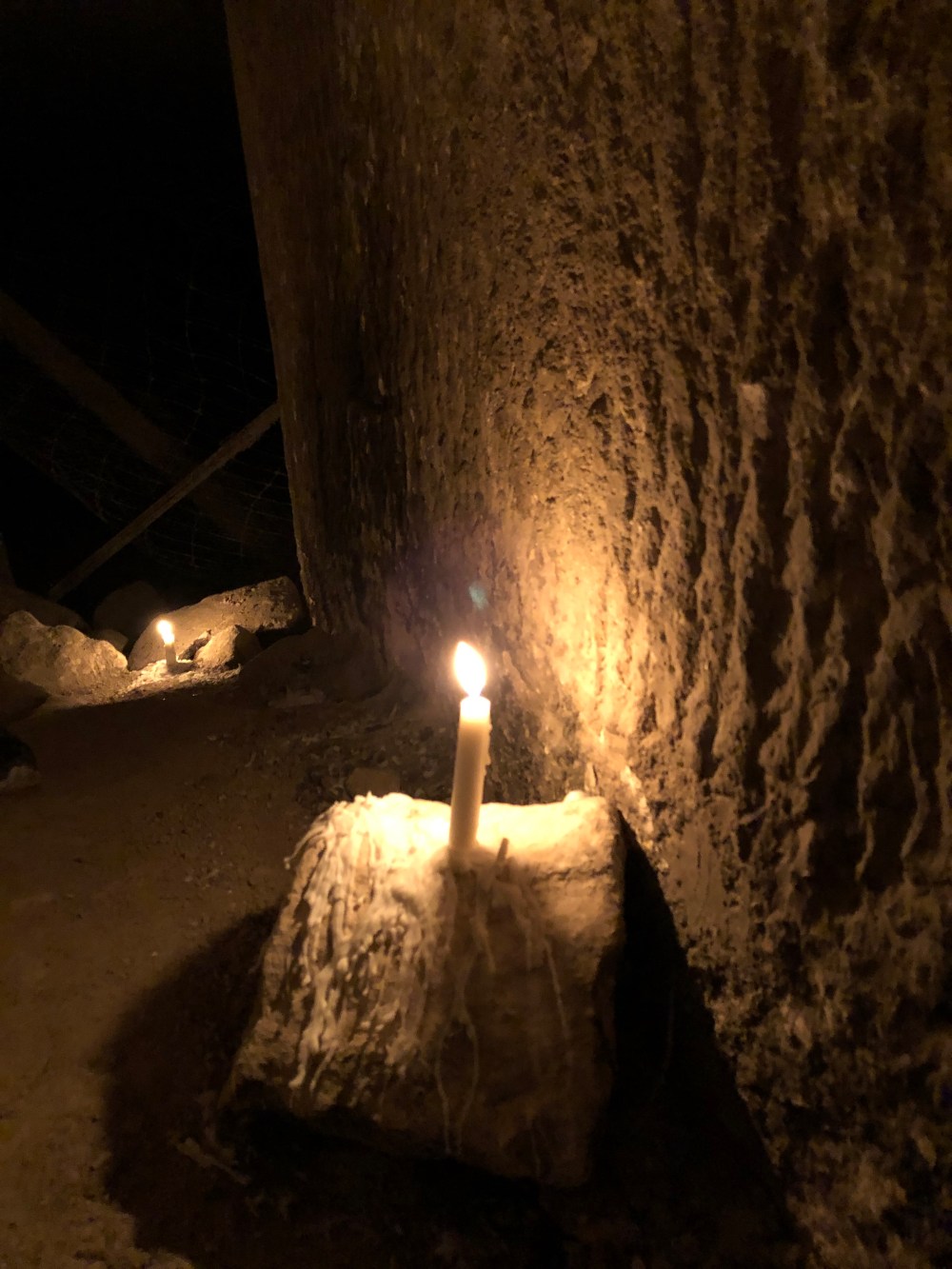 Only lit candles lead our way as we ducked, crawled, and shimmied our way through the caves.