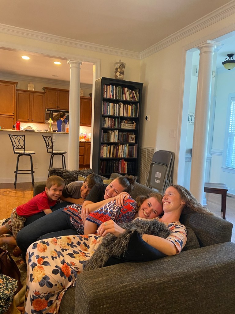 I wouldn’t call myself a particularly cuddly person, but something I’ve found is that a great way to love my housemates well is by doing so. I saw my opportunity Sunday afternoon and a couple others joined in!