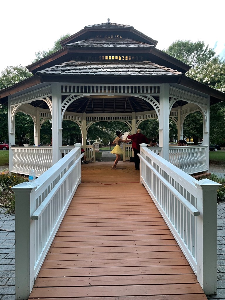 We met at a gazebo and the event started with a lesson, in which the group would all learn a new step, then rotate partners to practice. It was great getting to meet new people and dance with people of varying skill sets!