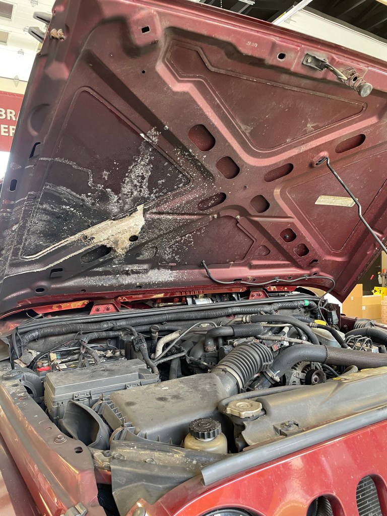 The blackened scorch marks indicate that there was a fire of some sort under my hood, recently, that I had no idea happened.