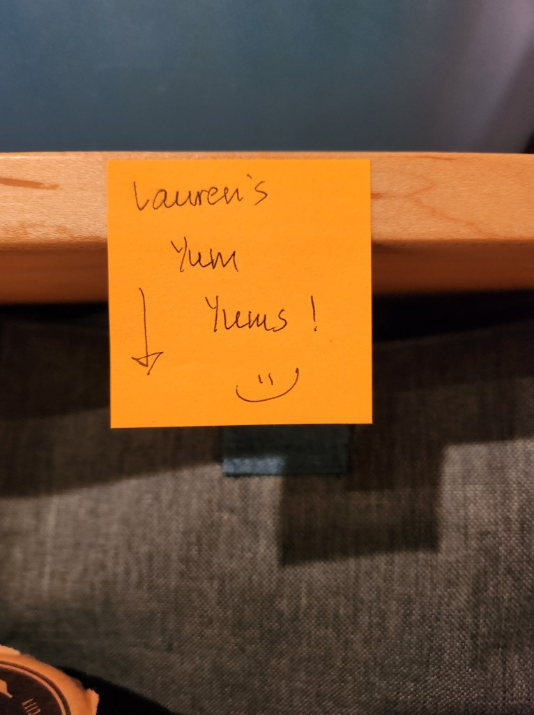 So, to have others make space for me (even if it’s as small as a post-it note on a nook in a cabinet), it’s still meaningful.